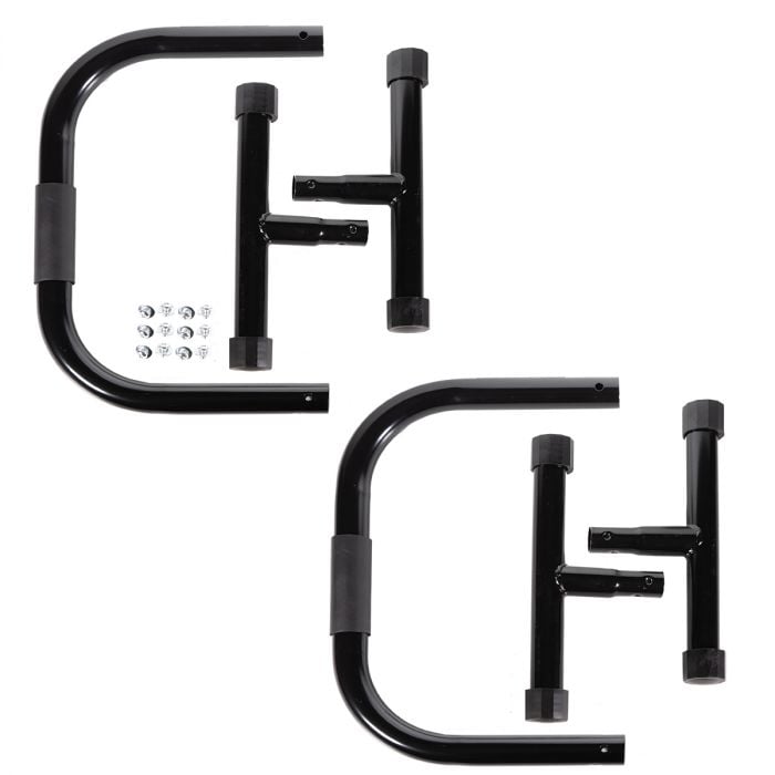DIP I Paralelne šipke Black su praktično pomagalo kojeg bi svaki pravi fitness entuzijast trebao imati u svojoj kućnoj teretani. Posebno su savršene za kućni trening snage s vlastitom težinom i za izvođenje vježbi poput sklekova, propadanja, gimnastičkih elemenata i mnogih drugih vježbi za gornji dio tijela i core. Konstrukcija je čvrsta i stabilna, tako da će izdržati sve velike težine. Ručka ima promjer 38 mm i izrađena je od protukliznog materijala, kako bi se osiguralo sigurno držanje. Ukupna duljina paralelne šipke je 48 cm, a cijev se nalazi na visini od 43 cm.