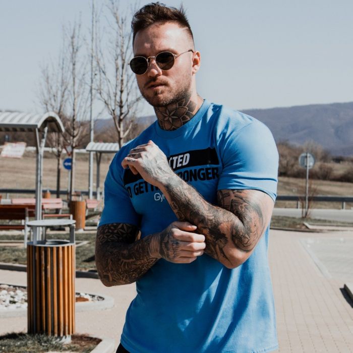 Majica Addicted Sapphire je muška fitness majica namijenjena za treninge i svakodnevno nošenje. Ima jedinstveni kroj, moderan dizajn i natpis “Addicted to getting stronger” na prsima. Napravljena je od 100 % pamuka, stoga je ugodna za tijelo i izvrsno pristaje figuri. Pokažite svoju ovisnost o stjecanju snage i mišića.