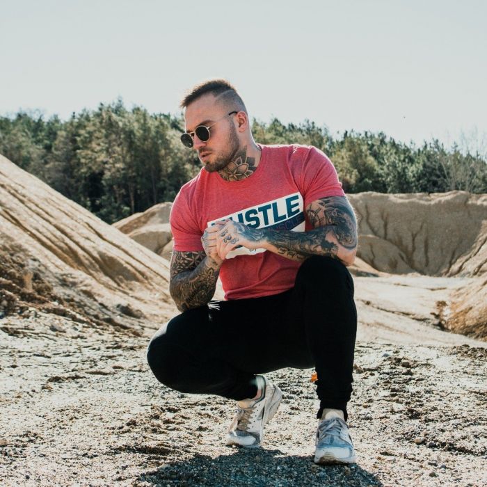 Majica Hustle For That Muscle Heather Red je fitness majica za muškarce s kratkim rukavima i izrađena je od 100% pamuka. To je čini prozračnom i ugodnom za tijelo. Ima suvremen, loose fit dizajn i na prsima je šareni naslov "Hustle for that muscle", što u prijevodu znači "trudi se naporno za one mišiće". Ovaj naslov će vas sigurno motivirati u postizanju vaših fitness ciljeva. Pogodan je za izbirljive muškarce i sportaše koji zahtijevaju kvalitetnu odjeću i za vrijeme sportskih aktivnosti