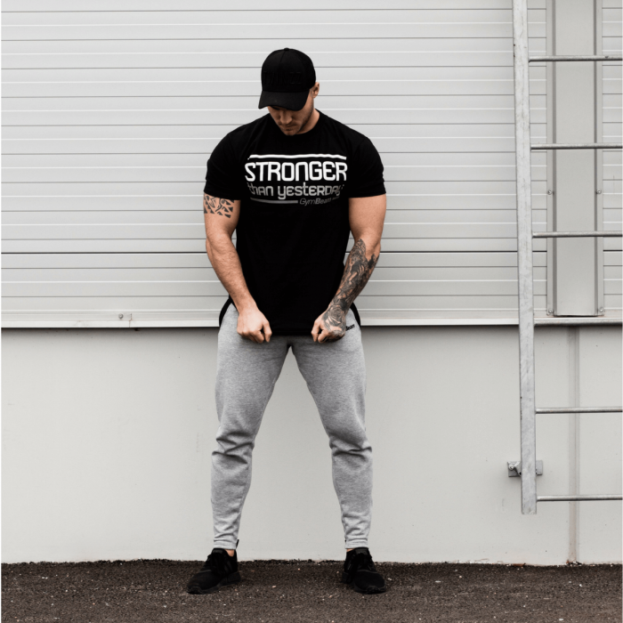 Majica Stronger u crnoj boji idealna je za vježbanje i to zahvaljujući visoko kvalitetnom materijalu - 100% predpranom pamuku. Ovaj materijal je ugodan na dodir i ne uzrokuje alergijske reakcije prilikom znojenja što će cijeniti svaki ljubitelj teških treninga. Njezin jedinstveni dizajn u kombinaciji s prikladnim natpisom "Stronger Than Yesterday", (u prijevodu “Jači nego jučer”) samo ističe njezinu svrhu. Ako se i vi slažete s tom idejom napisanom na majici, zavoljet ćete je!