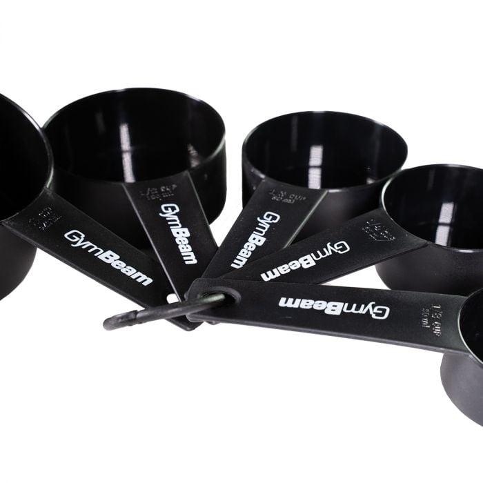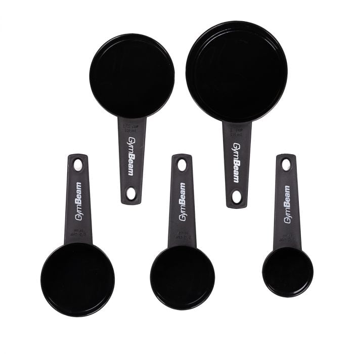 Mjerice su praktičan kuhinjski alat koji će vam pomoći da izbjegnete dugotrajan proces mjerenja i vaganja vaših sastojaka. Koristit ćete ih za mjerenje porcija dodataka prehrani, kao i količine sastojaka koji se koriste pri kuhanju ili pečenju, pazeći da imate pod kontrolom odgovarajuću dozu. Set uključuje pet crnih mjerica zapremine 30, 60, 80, 120 i 240 ml, ukrašene logom GymBeam. Izrađene su od polipropilena, što im osigurava trajnost.