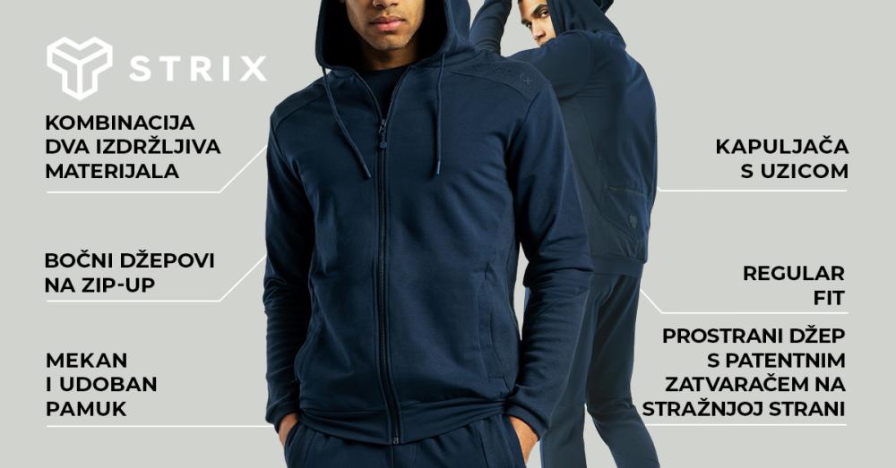 Ova kombinacija osigurava da je ugodno mekan i udoban. Elastični porub tada jamči savršeno prilagođavanje vašem tijelu. To ga također čini svestranim komadom pogodnim za razne aktivnosti. Na primjer, pružit će vam vrhunsku udobnost tijekom slobodnog vremena ili će vam ponuditi prozračnost i učiniti da se manje znojite tijekom neke sportske aktivnosti ili vježbanja u teretani. Osim toga, hoodie s patentnim zatvaračem lako je kombinirati s različitim komadima u vašem ormaru. Daljnji bonus je praktični stražnji džep s patentnim zatvaračem koji će pouzdano pohraniti vaš telefon, ključeve ili torbicu za bežične slušalice dok uživate u ritmu svojih omiljenih pjesama. Pridružite se eliti formiranoj oko brenda STRIX i u potpunosti izrazite svoju ljubav prema aktivnom načinu života.