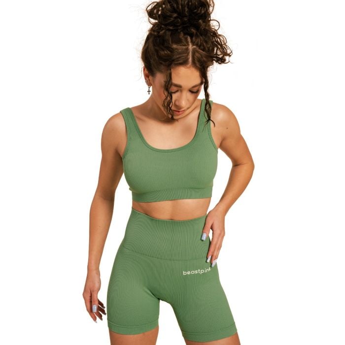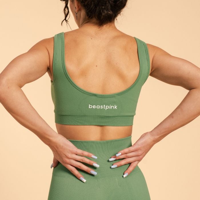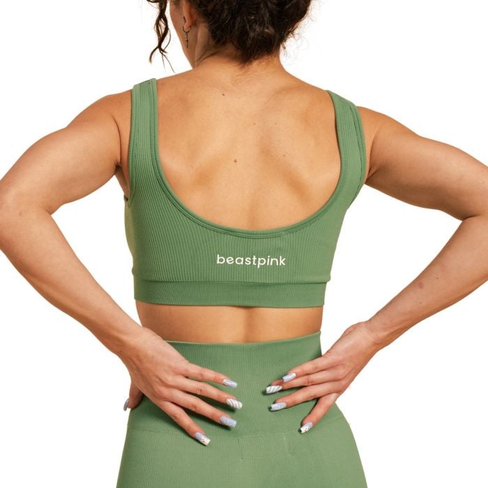 Osim savršenog materijala grudnjaka, cijenit ćete i njegovo pristajanje. Skrojena je da savršeno zagrli vaše obline kako biste se mogli usredotočiti na vježbanje. Treba spomenuti i njegov bezvremenski dizajn. Impresionira svojim trendi rebrastim uzorkom i otvorenim leđima koji mu daju jedinstven izgled. Osim toga, ukrašen je BeastPink logom na leđima.