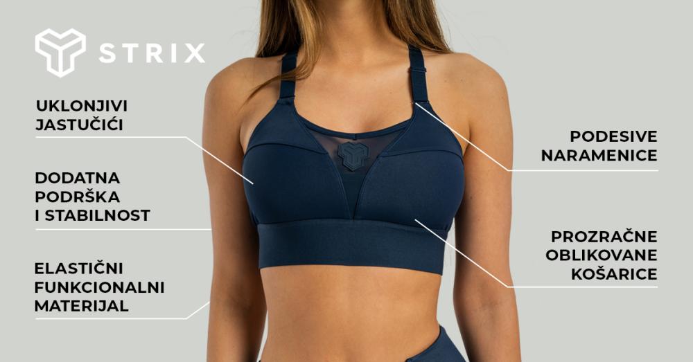 Sportski grudnjak ALPHA može se pohvaliti dizajnom i karakteristikama koje ga svrstavaju među najbolje u svojoj kategoriji. Zbog toga je postao sastavni dio STRIX obitelji. Već na prvi pogled impresionira kombinacijom tkanina različitih materijala što doprinosi većoj prozračnosti i pouzdanom upijanju znoja. Opremljena je mrežicom za bolju ventilaciju na mjestima gdje se najviše znojite . Ostatak 4-smjerno rastezljivog materijala savršeno se prilagođava tijelu i pouzdano odvodi višak vlage. Ovo ćete posebno cijeniti tijekom treninga snage i dužih aktivnosti izdržljivosti.