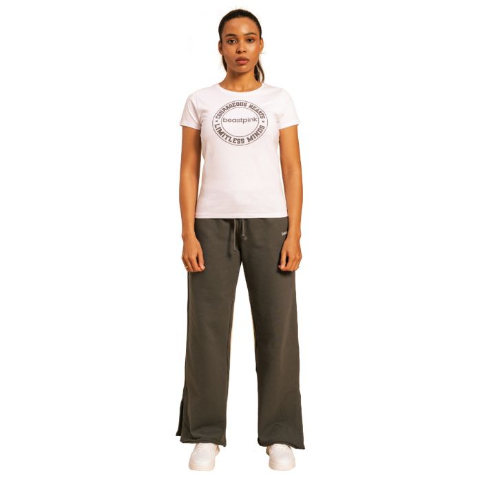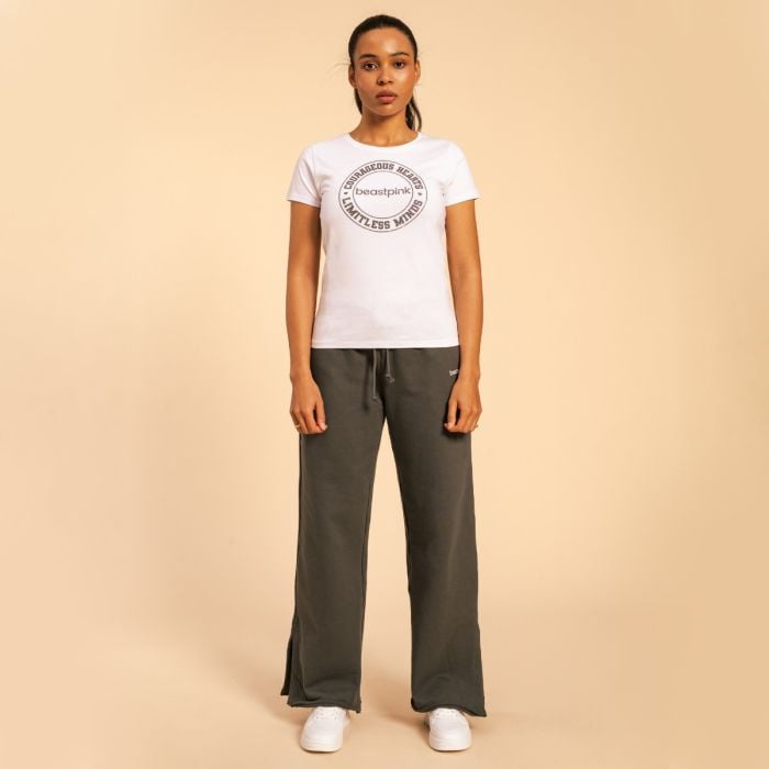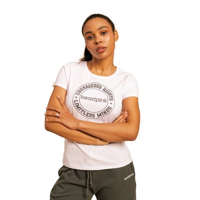 Glavni element dizajna majice je BeastPink logo sa sloganom koji slavi vašu hrabrost i otvoren um. Pomoći će vam pokazati svijetu svoju odlučnost i motivaciju da radite na sebi. Lako se kombinira s tajicama ili trapericama, što ga čini svestranim izborom za svakodnevnu sportsku kombinaciju. Osim toga, savršena je za jogu, pilates, šetnju, kao i za ležerno nošenje.