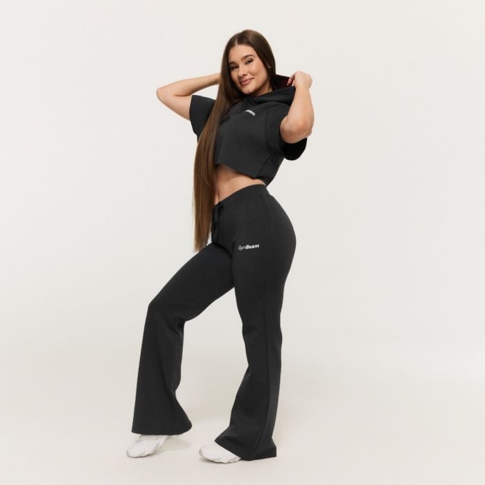 Ovaj model odmah privlači pažnju svojim modernim krojem u "flare" stilu, koji se lagano širi od koljena prema dolje. Ovaj dizajn laska figuri i izgleda vrlo ženstveno. Budući da nema džepove, stvara čist i elegantan izgled. Štoviše, ova trenirka srednje visokog struka opremljena je praktičnom elastičnom trakom i vezicom, što vam omogućuje da ih prilagodite svojim potrebama.