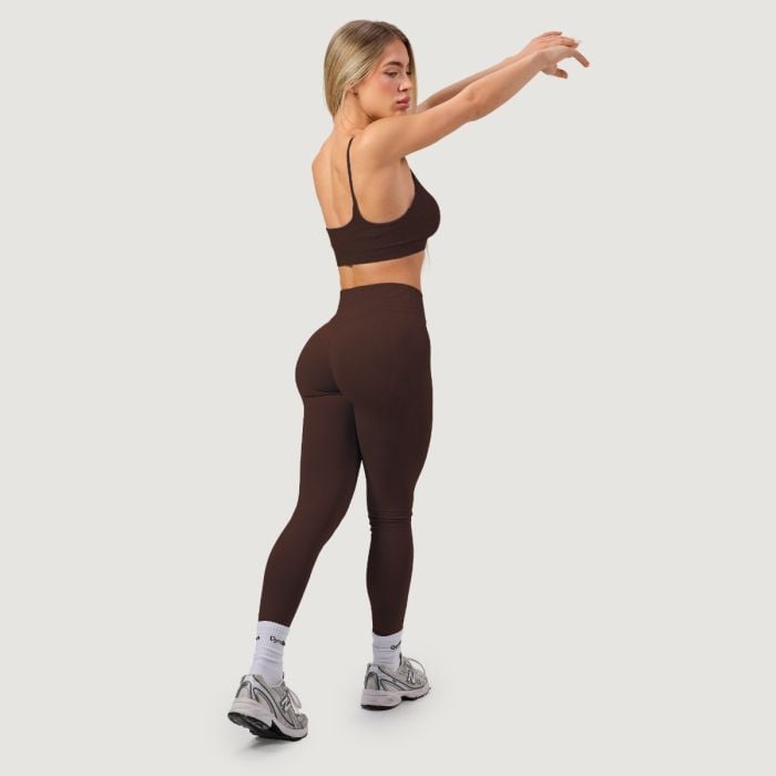 Ove sportske tajice dizajnirane su s naglaskom na ženstvenu siluetu, koju ističe visoki struk s rebrastom strukturom koji sigurno ostaje na mjestu. Posebni scrunch detalji na stražnjici, uz V-oblikovane rebraste linije, učinkovito zaokružuju donji dio te pružaju prirodni push-up efekt. Praktičan detalj je unutarnja završna obrada protiv klizanja u pojasu, koja sprječava neželjeno spuštanje tajica čak i tijekom dubokih čučnjeva. Nadalje, izostanak prednjeg šava osigurava estetski izgled bez neugodnog utiskivanja. Obucite ih i pokažite svijetu da ste spremni gurati svoje granice s elegancijom i lakoćom.
