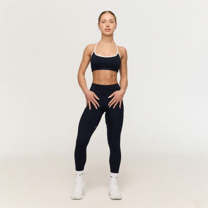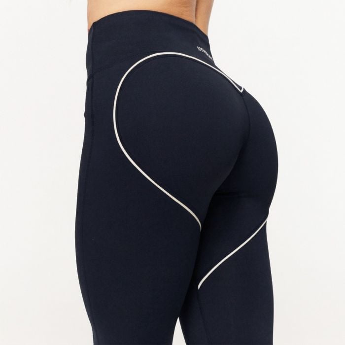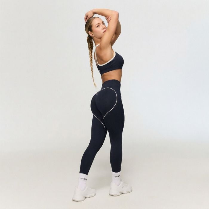 Ovaj sportski esencijalni komad ima dugi kroj koji se savršeno prilagođava vašoj figuri. Visoki struk osigurava da tajice sigurno ostaju na mjestu i neće kliziti čak ni tijekom dubokih čučnjeva. Dizajn s bešavnim prednjim šavom bez džepova osigurava maksimalnu udobnost bez neugodnog udubljenja ili trenja. Ističe se veliki i kontrastni rub u obliku srca na stražnjoj strani , oblikovan tankim bijelim prugama. Ovaj detalj optički oblikuje leđa i savršeno ističe vaše prirodne obline.