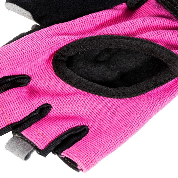 Ženske zaštitne fitness rukavice Pink pouzdano štite ruke od žuljeva tijekom vježbanja u teretani. Osim toga, opremljene su praktičnim trakama koje na udoban način jačaju zapešća. Protuklizni sloj u području gripa osigurava da vam uteg ne isklizne iz ruku. Ove će rukavice cijeniti sve aktivne žene i fitness entuzijastice.